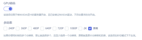 提示:建议使用GPU转码的,只设置1个分辨率,或者2个,这样效率会更高。
