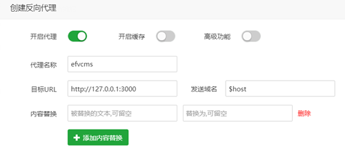 接下来继续进入域名设置,找到反向代理 ⇒ 添加反向代理,目标URL填转码的内网地址127.0.0.1:3000,如图: