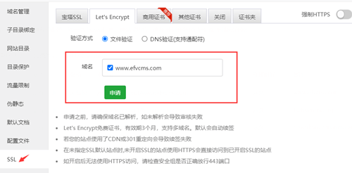 二、使用宝塔面板+EFV高级版自带的网站管理绑定